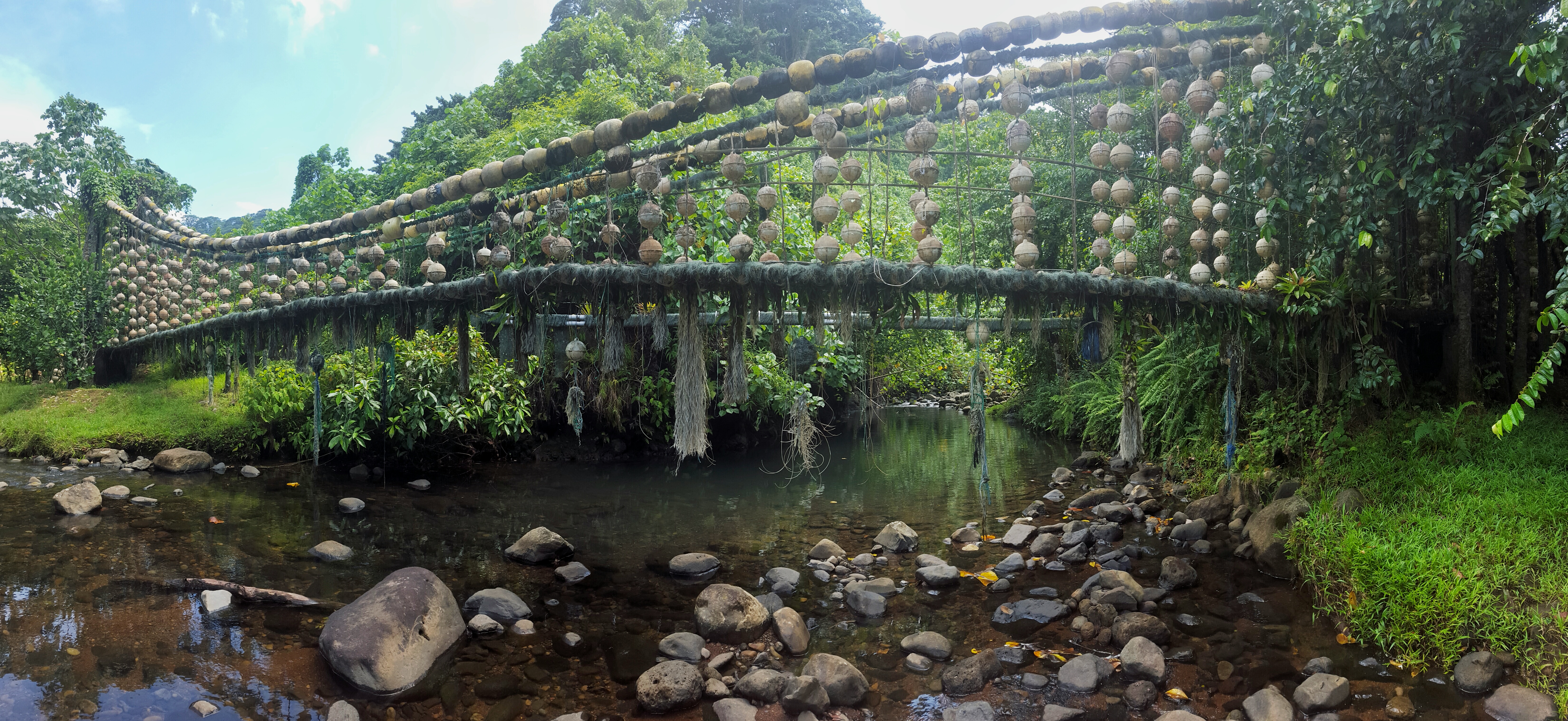 This bridge was made entirely of recycled material found on the waters of other boats taken from the beach.
